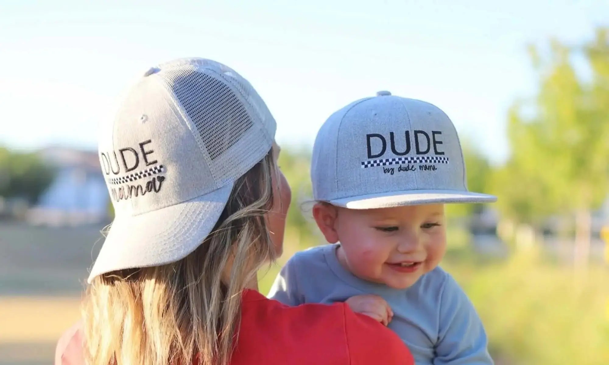 Light Gray + Checkered Matching Hats for Dude & Mama